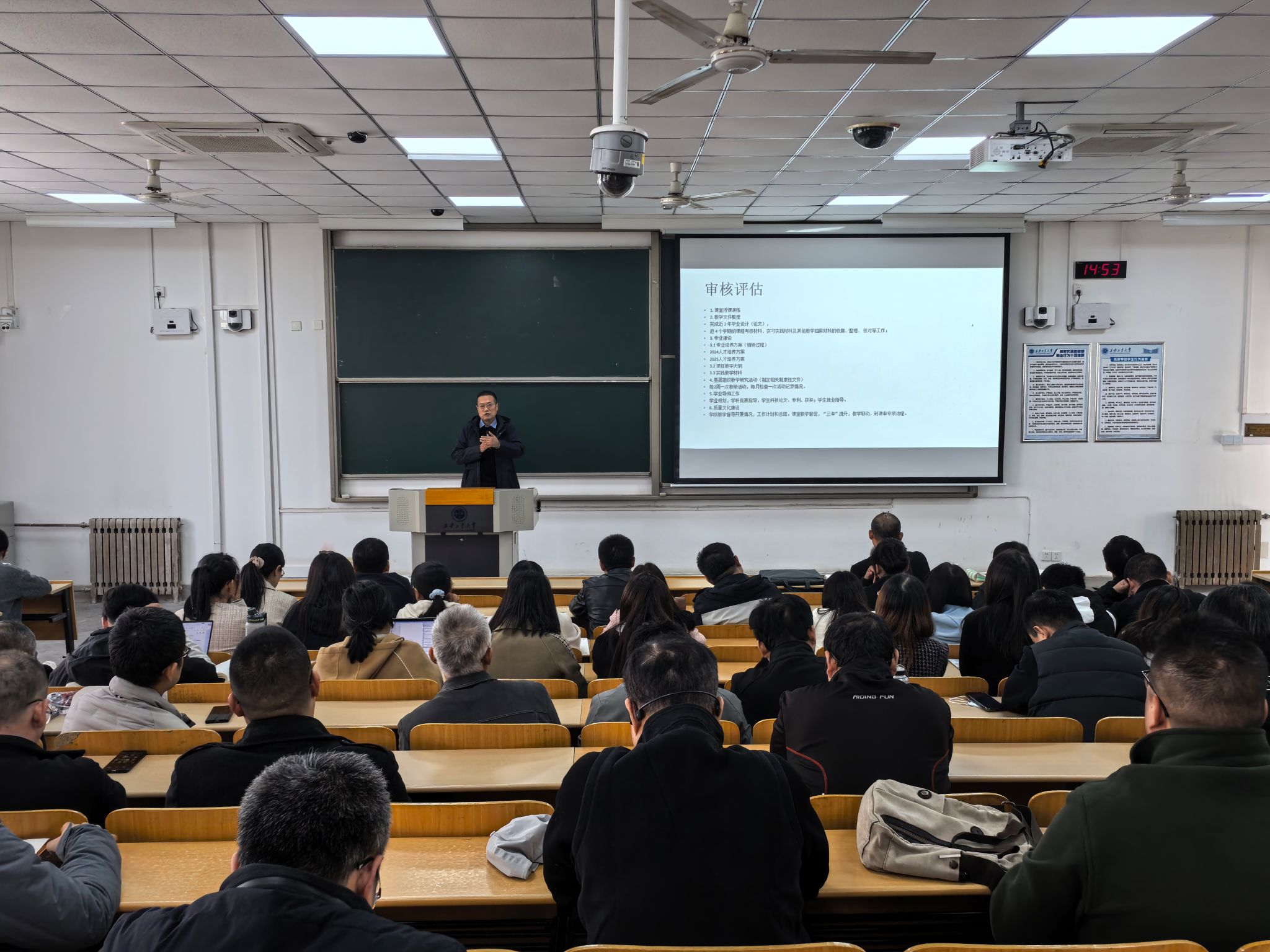 一是开展全员覆盖式课堂教学演练,覆盖理论课、实践课等各类课程,采用“模拟授课+专家集中评议+个性指导”模式,聚焦教学目标达成、教学方法创新、师生互动设计等关键环节,着力提升课堂教学实效;二是针对近两年毕业设计开展系统化整理,明确选题合理性、过程管理规范性、成果质量达标性等核心要求;三是实施教学文件规范化梳理,明确教案、教学大纲、考核资料、课程档案等文件的统一标准,要求各教系逐门课程核查、逐份文件把关,确保文件齐全完整、逻辑清晰、数据准确,形成规范化、可追溯的教学档案体系。 此外,文安副院长还对专业培养方案的修订、学业导师工作、质量文化建设的工作进行了周密的部署。